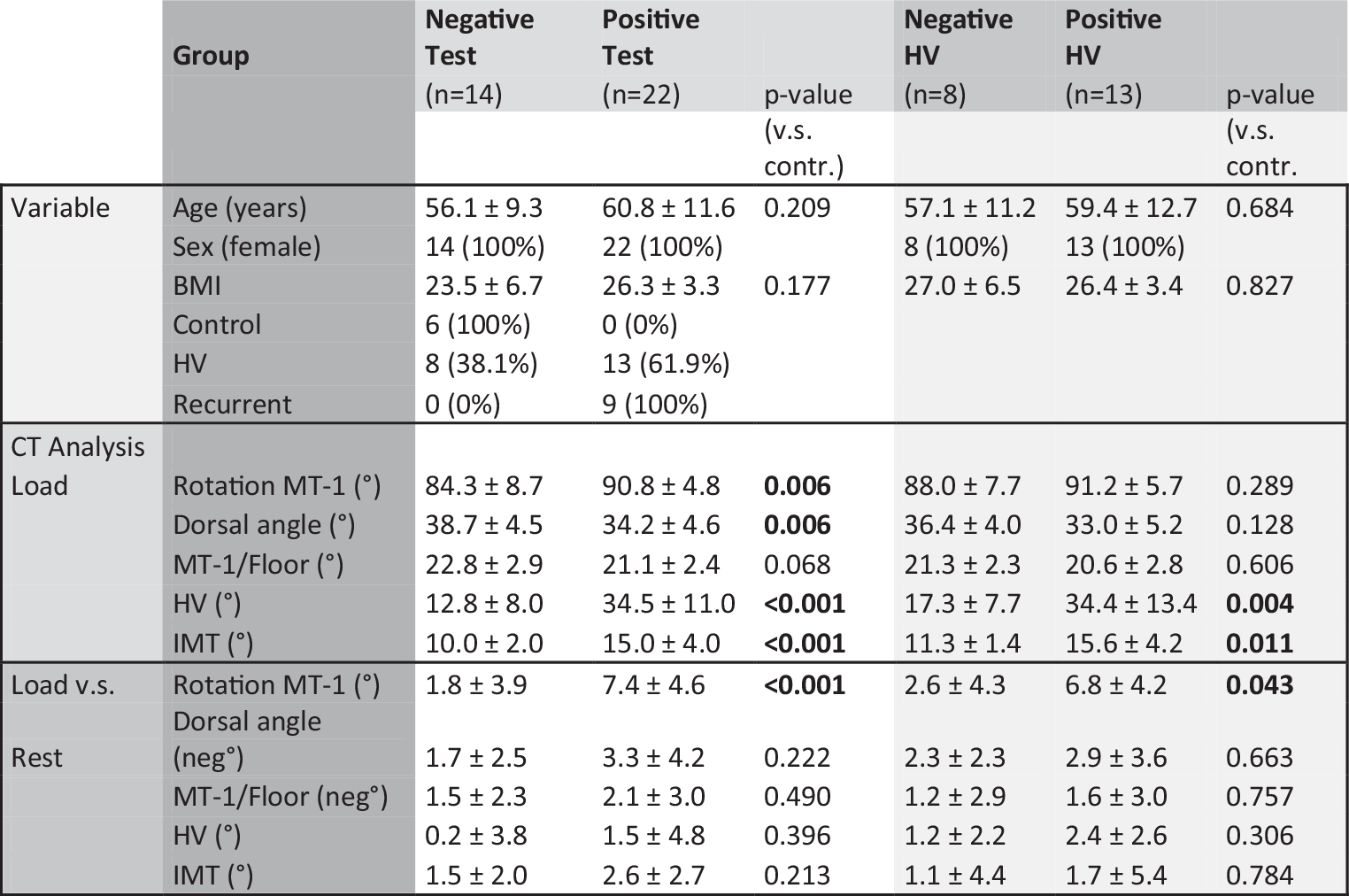 In this study 36 feet from 18 female patients were prospectively selected from our foot specific surgical outpatients’ clinic between 11/2018 and 05/2019 and assigned into groups (6 healthy controls, 21 HV, 9 recurrent HV) according to their clinical and radiologic testing result (Fig. 3).