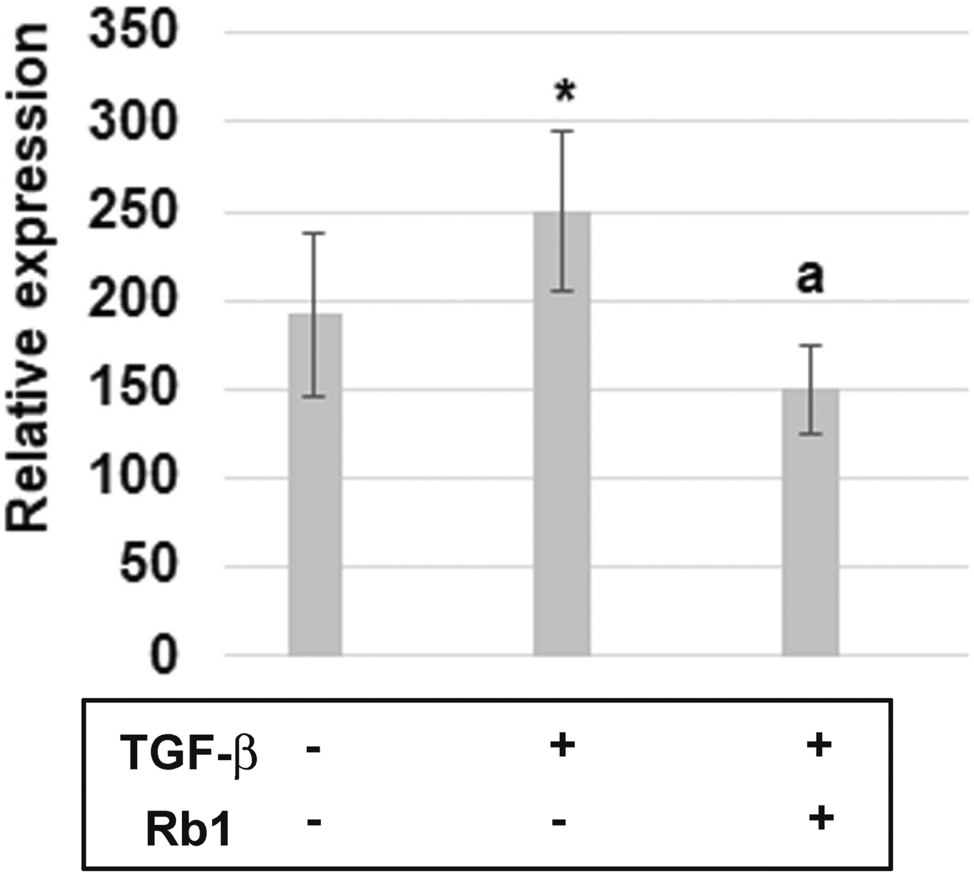 The cells stimulated with Rb1 showed an increased expression of all the studied transcription factors compared to the nonstimulated cells. The expression of Fra2 and c-Fos was also higher in these cells compared to the cells incubated with TGF-β (Fig. 4).