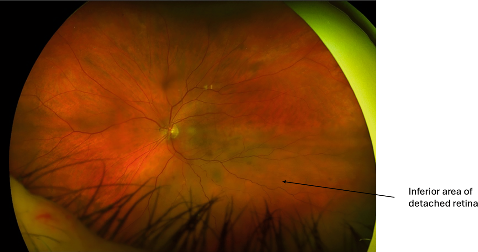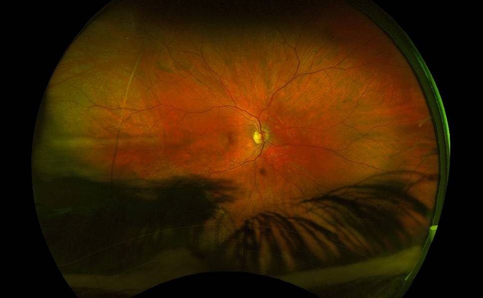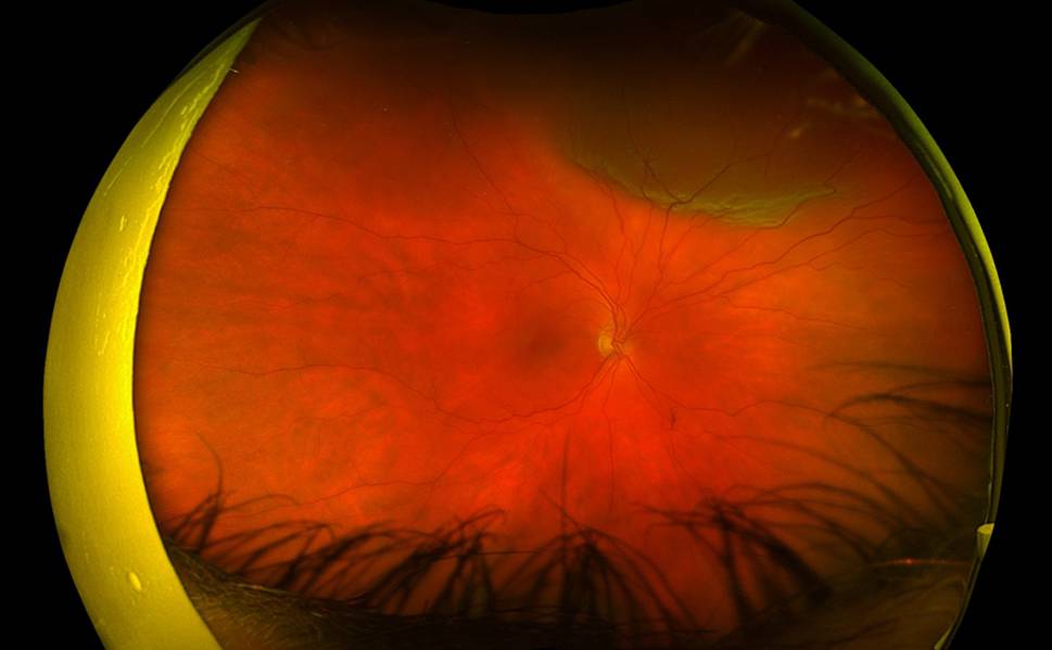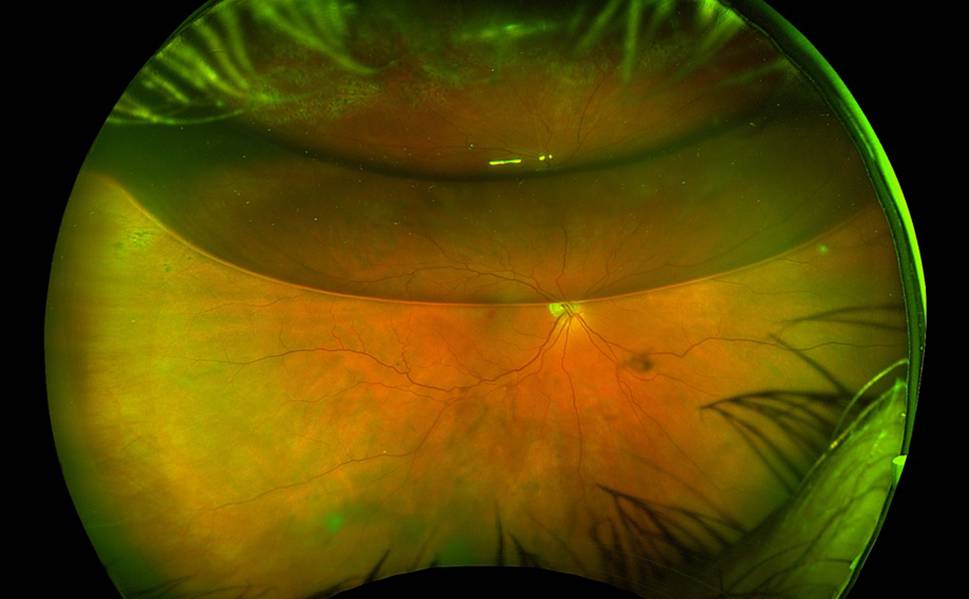 In most cases, the retinal detachment and retinal breaks can be identified on clinical examination without ancillary imaging. However, ultra-widefield (UWF) colour fundus photography can be helpful in documenting the extent of the RRD and in patients who may have difficulty tolerating an indented examination (such as in children).