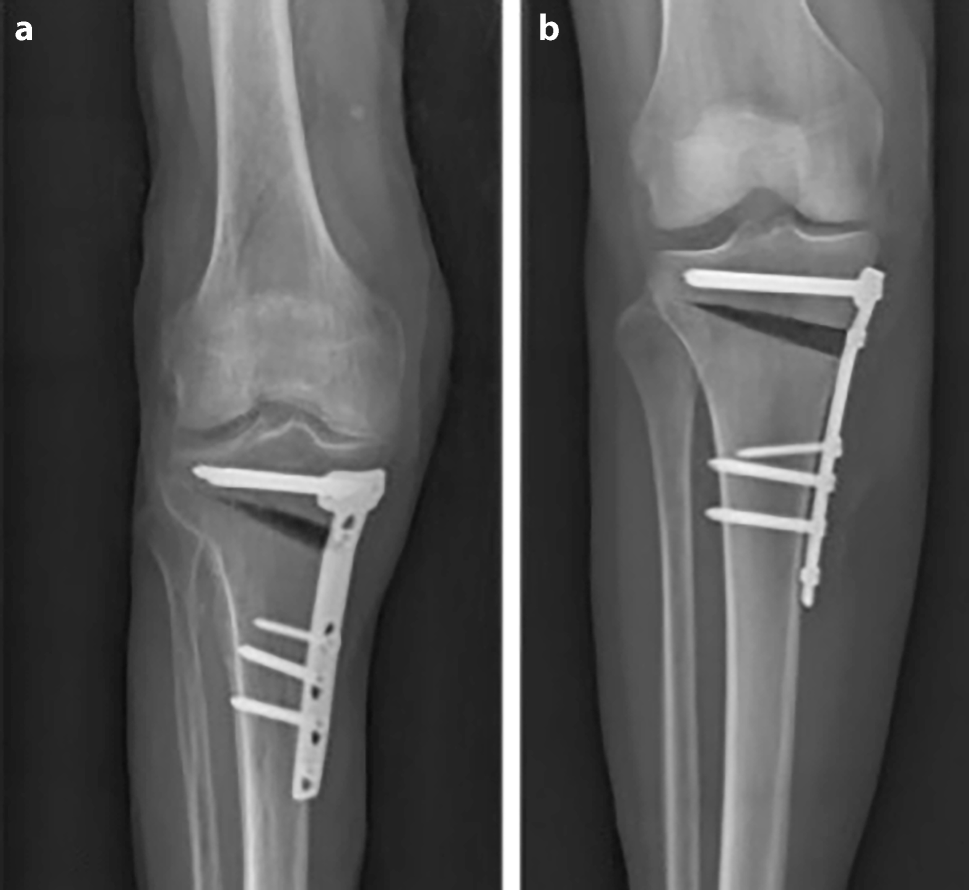 Yacobucci GN, Cocking MR. Union of medial opening-wedge high tibial osteotomy using a corticocancellous proximal tibial wedge allograft. Am J Sports Med. 2008;36(4):713–9.CrossRef