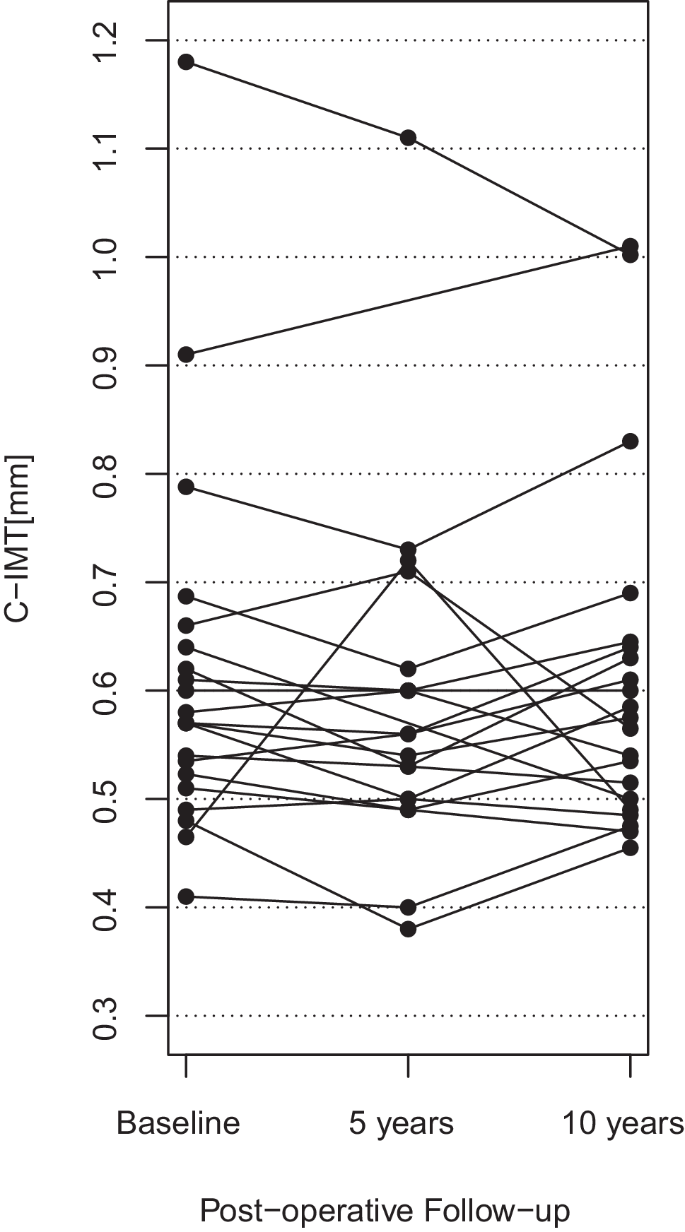 Individual C‑IMT changes after bariatric surgery during the 10-year observation period. C‑IMT carotid intima media thickness