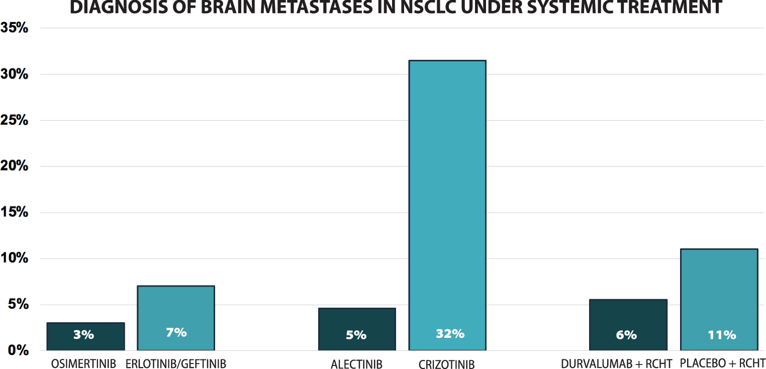 Furthermore, the addition of durvalumab to radiochemotherapy in stage III NSCLC was associated with an improved primary BM prevention as 5.5% of patients in the durvalumab arm developed BM compared to 11.0% in the control arm [28].