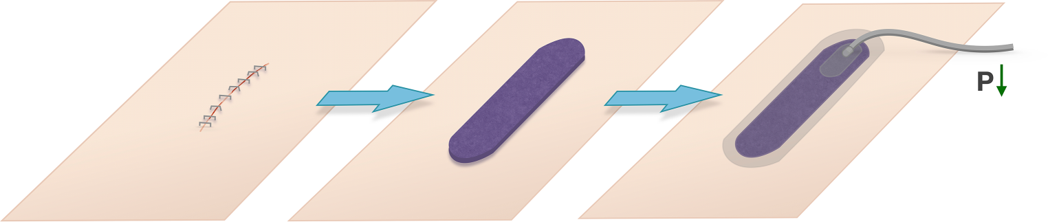 Principle of closed-incision negative-pressure wound therapy (ciNPWT). P pressure