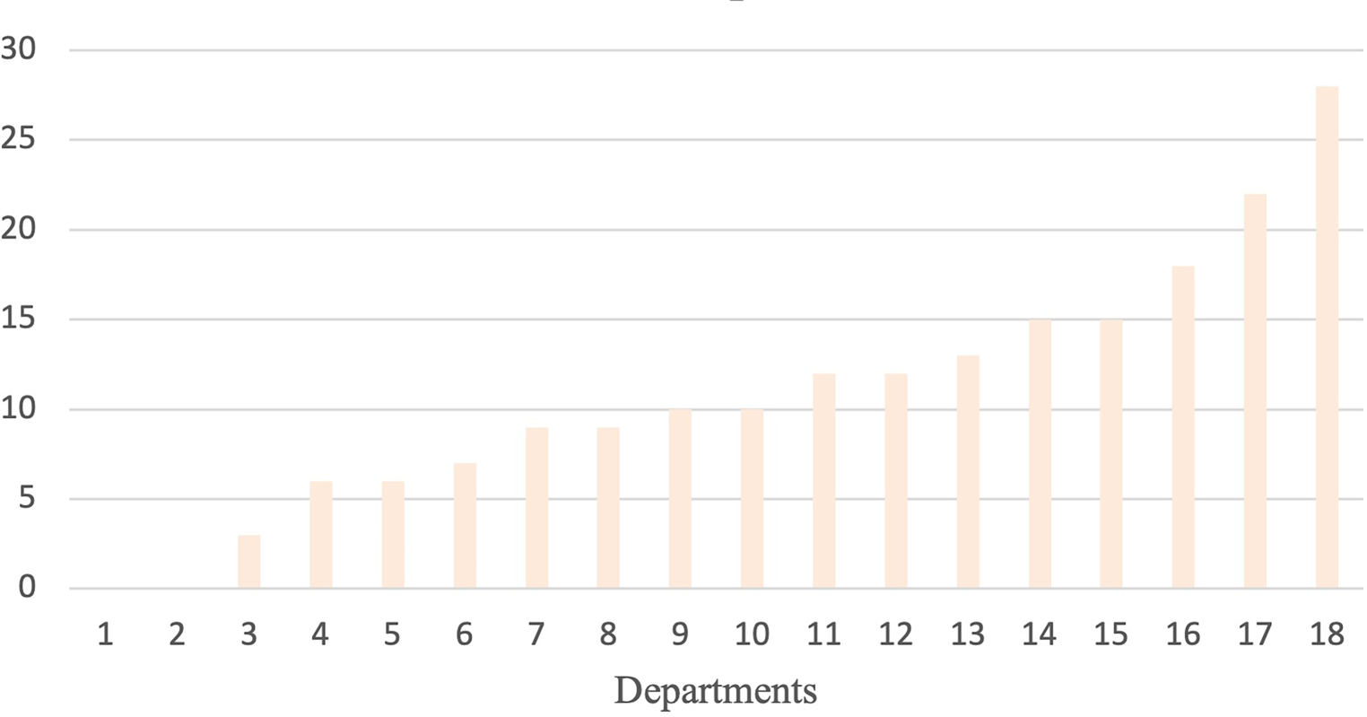 Data collection was without difficulties for 13 (72.2%) departments; 5 (27.8%) departments reported difficulties in data gathering