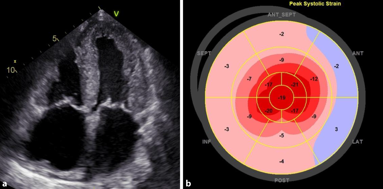 The most important amyloid fragments deposited in the heart are transthyretin (TTR) and immunoglobulin light chains. Amyloid deposition leads to enlargement of the extracellular space, which primarily causes diastolic dysfunction of the left ventricle. Patients who suffer from cardiac amyloidosis develop progressive heart failure that has an unfavorable prognosis [11]. The diagnosis needs to be swiftly established to provide patients with the best possible treatment options. Specific therapies have become available for the treatment of TTR amyloidosis, and these can improve patient prognosis if they are prescribed in a timely manner.
