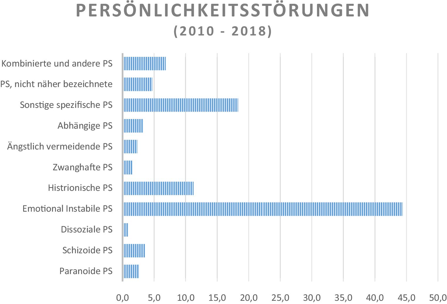 Prozentualer Anteil der spezifischen Persönlichkeitsstörungen seit Einführung des ICD-10