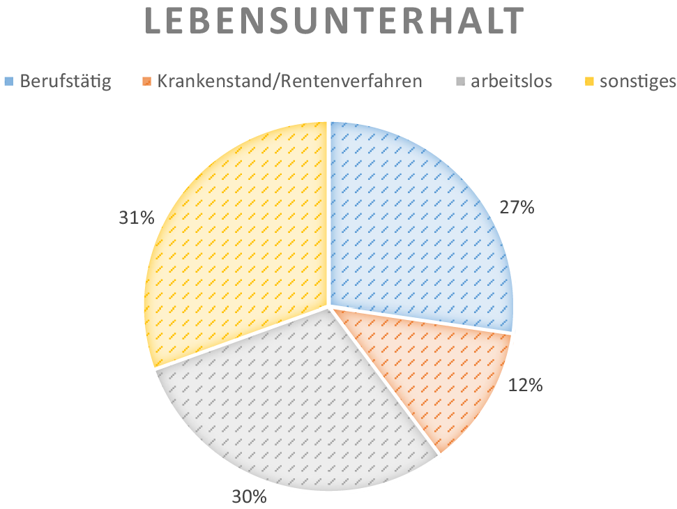 Lebensunterhalt der PatientInnen mit einer emotional instabilen Persönlichkeitsstörung. (Sonstiges: jeder Form der Beschäftigung ohne Einkommen z. B.: StudentIn, SchülerIn, Hausfrau/mann)