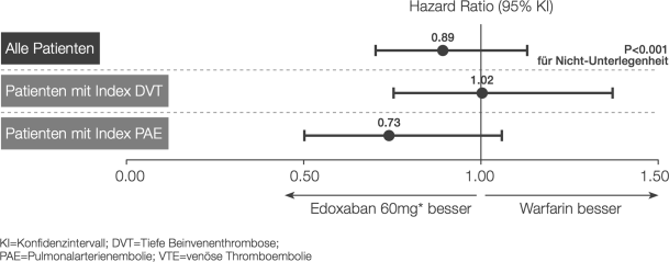 Vergleichbare Effektivität von Edoxaban gegenüber Warfarin in der HOKUSAI-VTE Studie