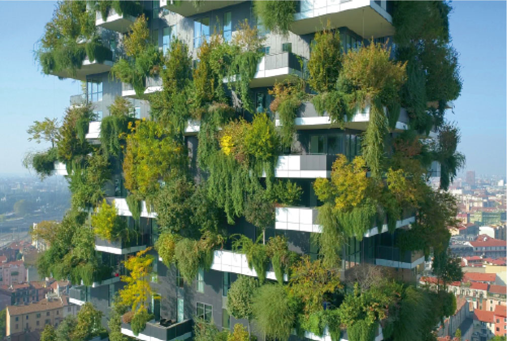 Ein Werkzeug gegen die Hitze: Die vertikalen Gärten wie beispielsweise von Stefano Boeri, Mailand, 2014