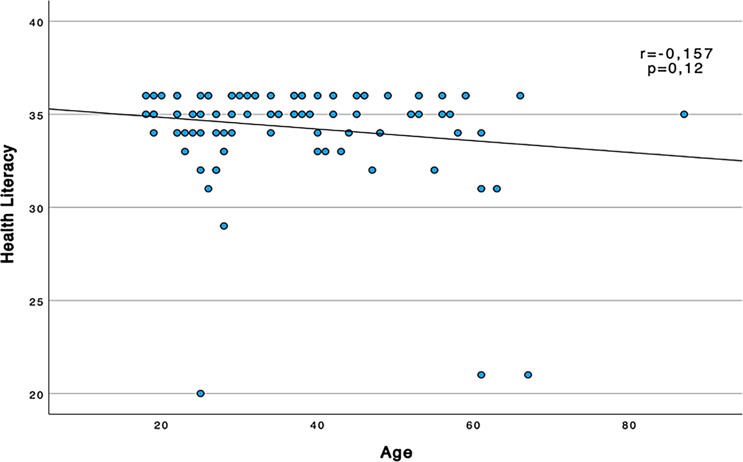 Spearman’s rank correlation between health literacy score (points using the S‑TOFHLA tool) and age of patients (years)