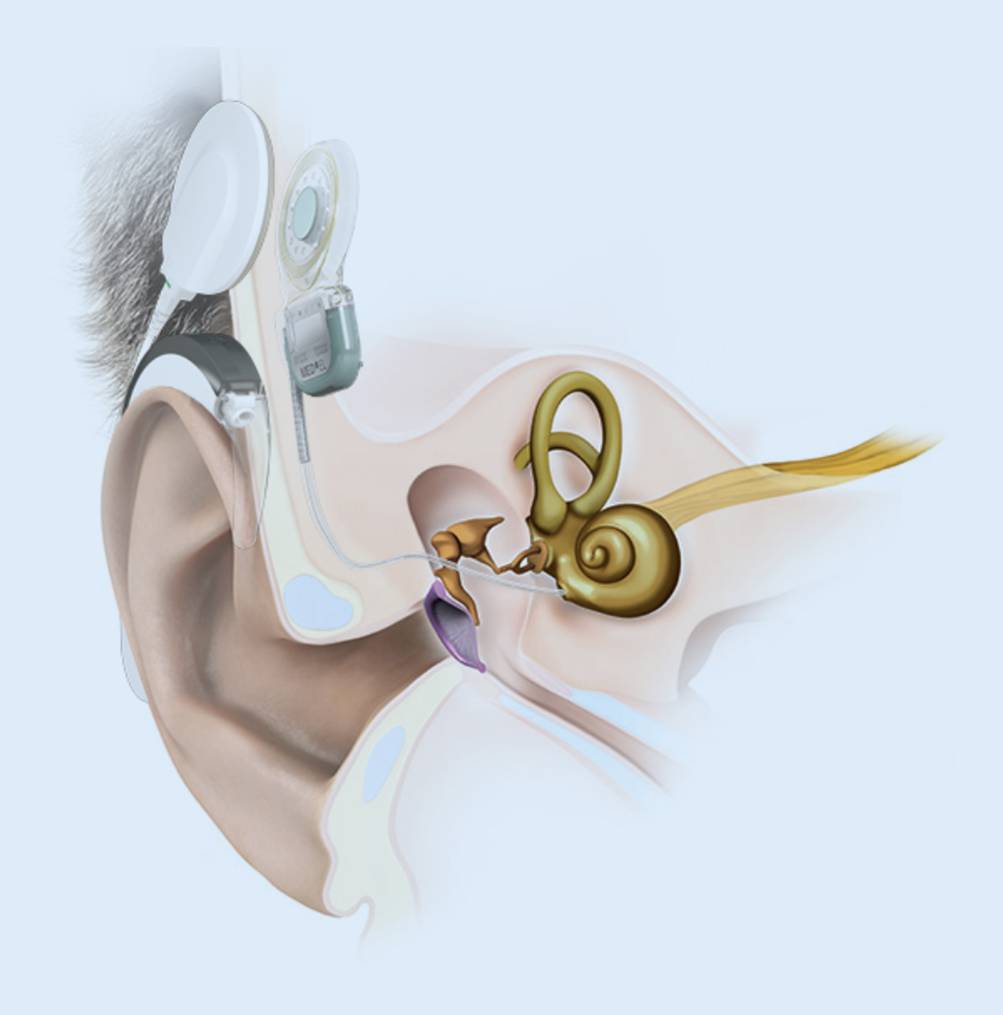 Mithilfe eines Cochleaimplantats (CI) kann die Hörfunktion wiederhergestellt werden, indem der Hörnerv durch elektrische Impulse direkt stimuliert und der Reiz als Höreindruck zentral weiterverarbeitet wird.