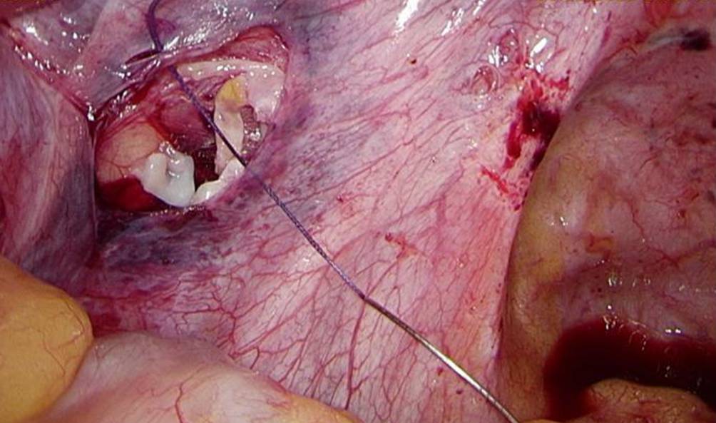 Im Alter von 27 Jahren wurde sie, bei nun vorhandenem Kinderwunsch, an eine Kinderwunschklinik überwiesen. Hier wurde das zuvor kryokonservierte Ovarialgewebe laparoskopisch retransplantiert. Dabei wurde das Ovarialgewebe in das noch vorhandene rechte Ovar und in eine neu angelegte peritoneale Tasche in der Fossa ovarica links retransplantiert (s. Abb. 1).