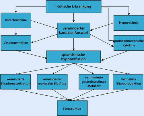 Pathophysiologische Mechanismen der Entstehung stressassoziierter Mukosaschäden bei kritisch Kranken. (In Anlehnung an [8])