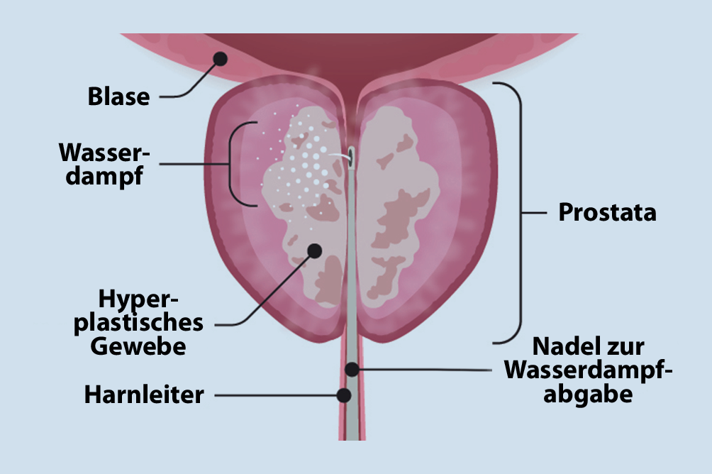Reicht eine medikamentöse Therapie nicht aus, um die Beschwerden angemessen zu verbessern, oder ist eine dauerhafte Medikamenteneinnahme nicht gewünscht, stehen minimal-invasive Methoden zur Verfügung. Diese alternativen Therapieoptionen können eine signifikante Verbesserung der funktionellen Parameter erzielen und stellen eine sichere Alternative zu etablierten operativen Verfahren, wie z. B. der transurethralen Resektion der Prostata (TUR-P), dar.