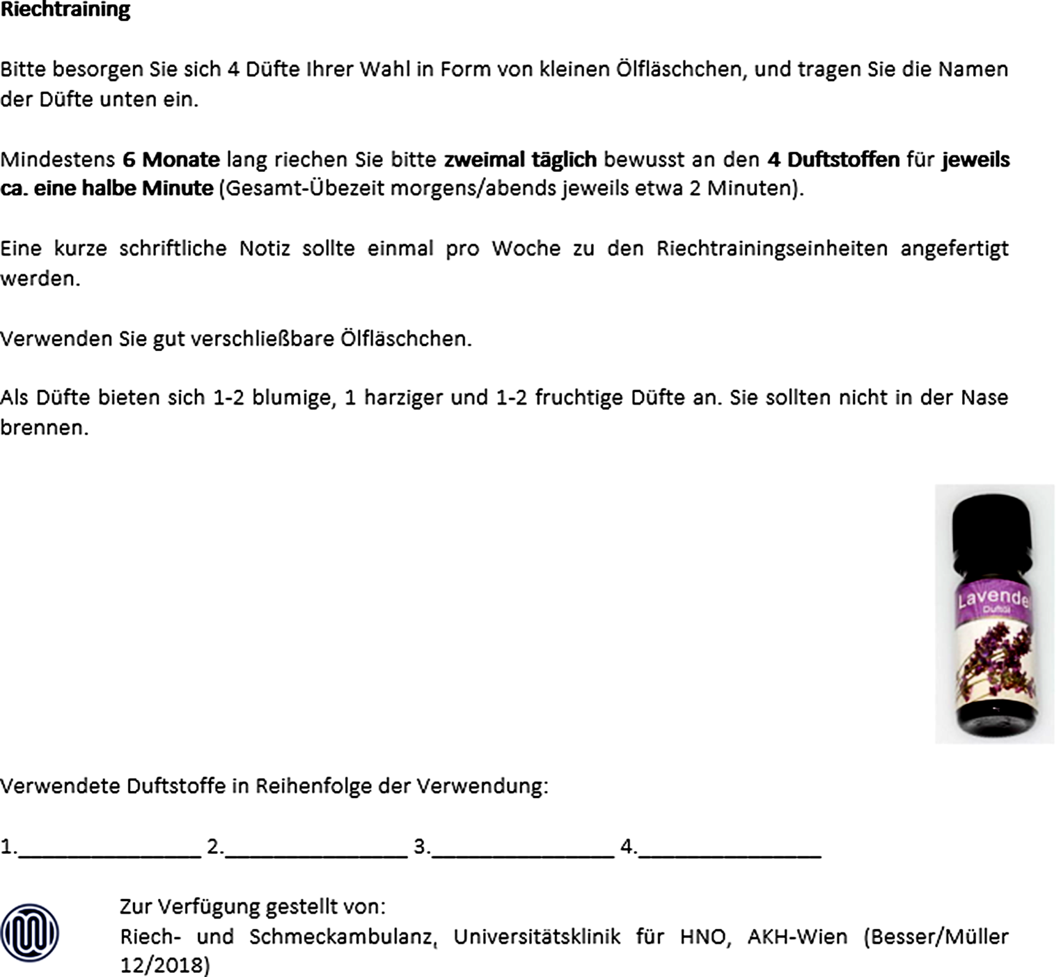 Damm M, Pikart LK, Reimann H, Burkert S, Göktas Ö, Haxel B, et al. Olfactory training is helpful in postinfectious olfactory loss: a randomized, controlled, multicenter study. Laryngoscope. 2014;124(4):826–31.PubMed