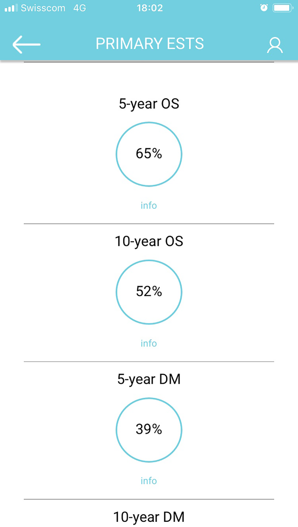 SARCULATOR estimate of oncological outcomes in terms of overall survival (OS) and incidence of distant metastasis (DM), which guided the recommendation for neoadjuvant chemotherapy.