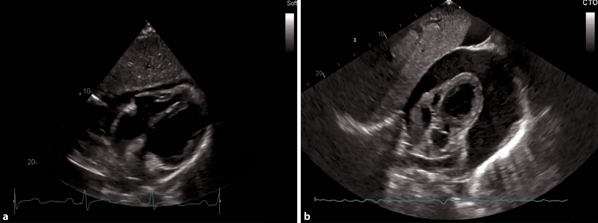 In cardiac ultrasound, standard protocols exist, which should be followed in a comprehensive examination. In a POCUS setting, the aim of the examination is to visualize the heart and to detect specific pathologies such as a pericardial effusion, tamponade, severely reduced left and right ventricular functions, or hypovolemia. Decisions may need to be made as to whether a referral to a comprehensive cardiac ultrasound examination or for other tests is indicated [29, 43].