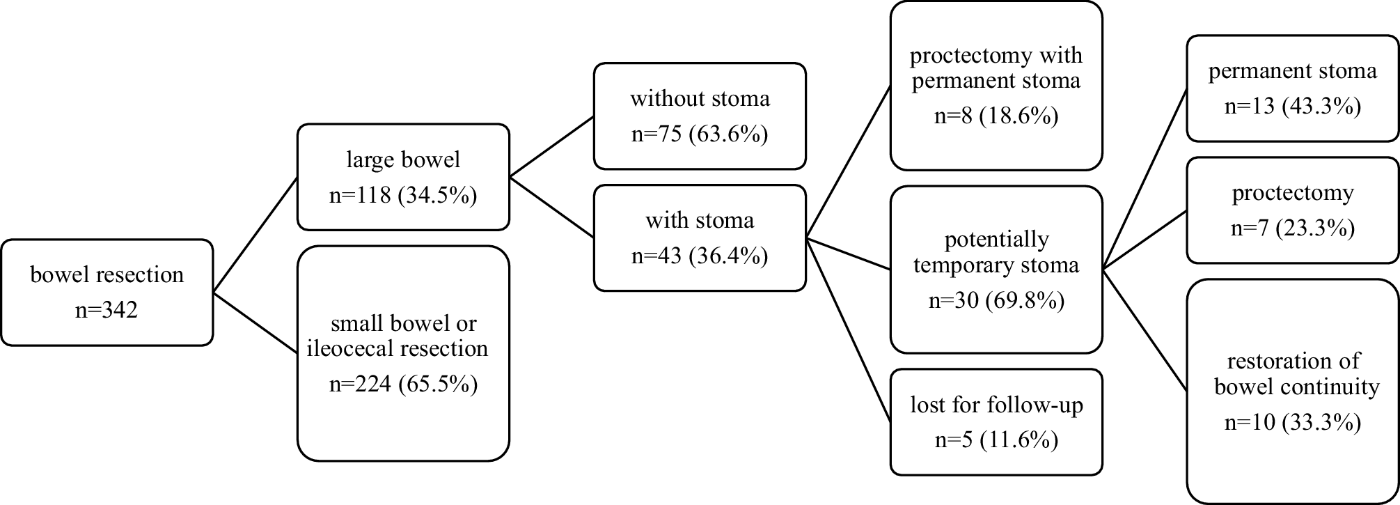 Flowchart of stoma formation after bowel resection and restoration of bowel continuity