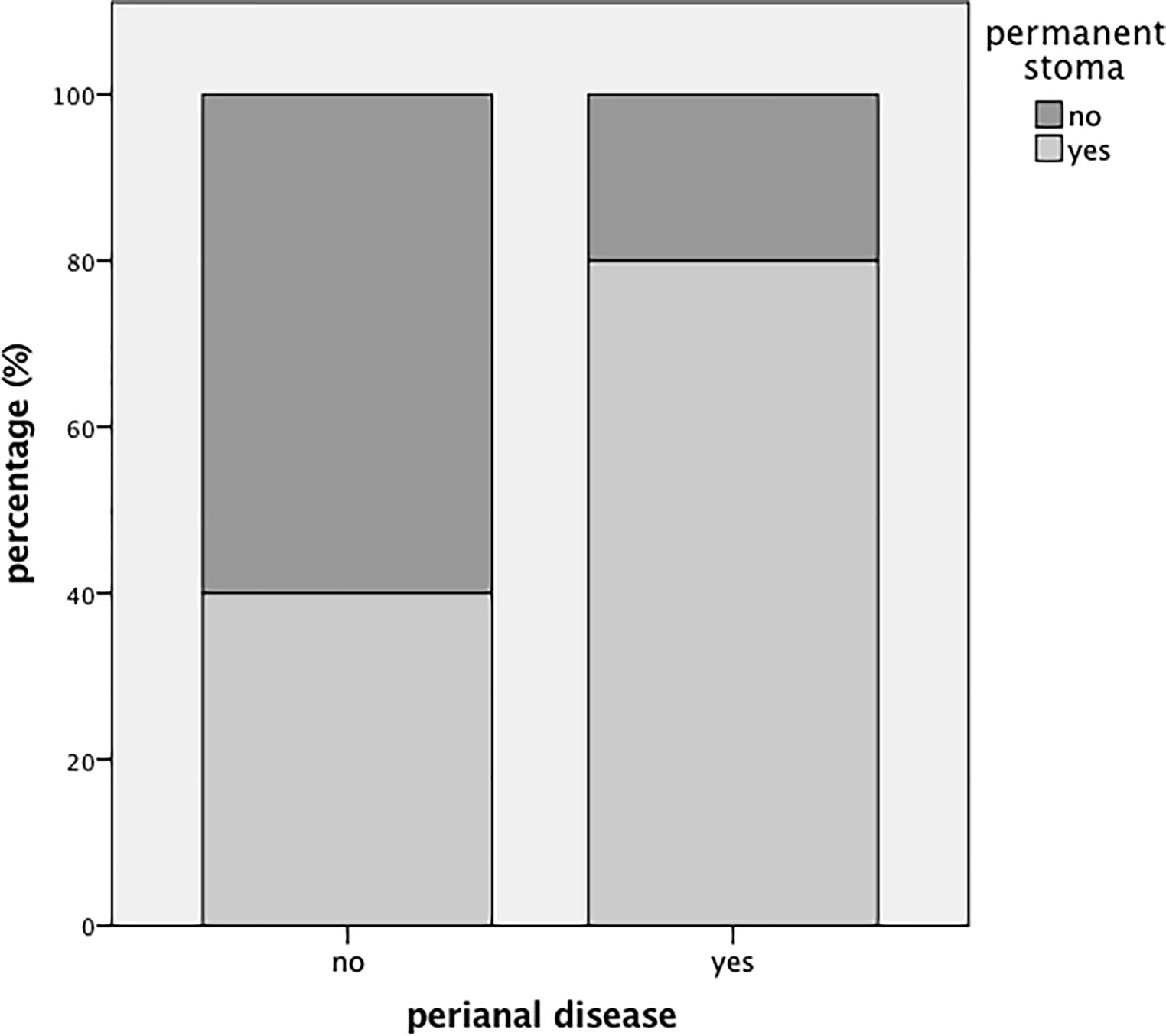 In the present series 20 patients (66.7%) suffered from perianal disease involvement, which was associated with a significantly increased rate of permanent stoma creation (n = 16/20, 80%) in contrast to patients without perianal disease (n = 4/10, 40%, p = 0.045, Fig. 2). In the group of patients having a stoma performed with concomitant perianal disease six patients (n = 6/20, 30%) underwent further proctectomy. In contrast only one patient lacking perianal disease involvement finally had to undergo proctectomy (n = 1/10, 10%). Biological drugs were administered in 73.3% of patients with perianal disease, while only 33.3% of patients lacking perianal involvement received biologics (p = 0.092).