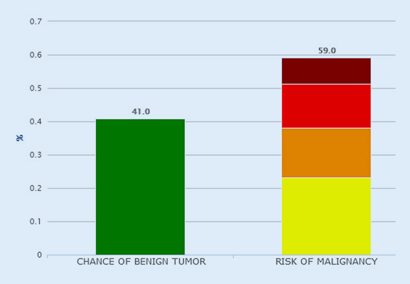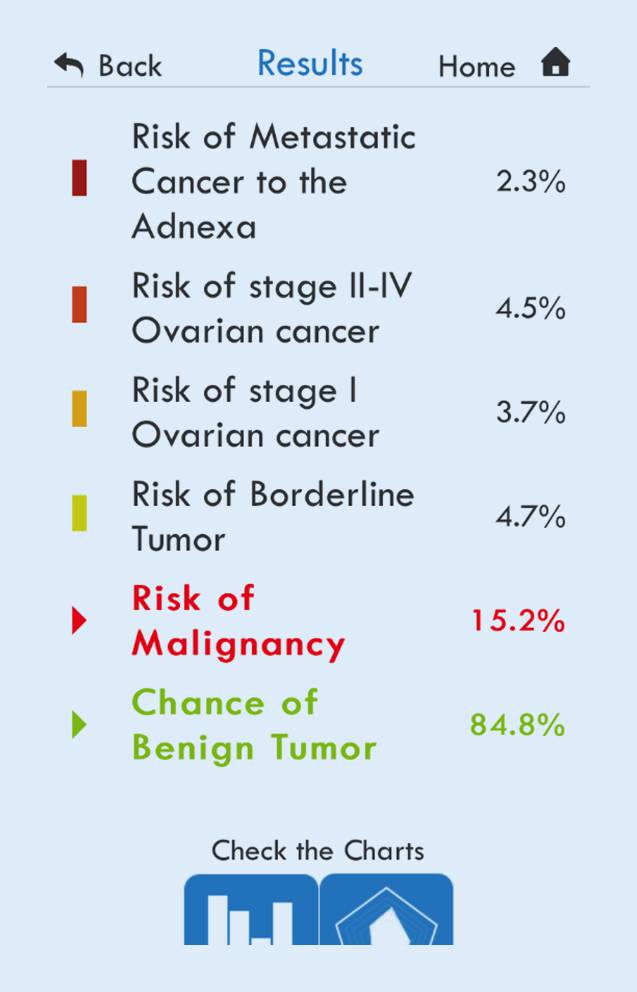 Ergebnis der Risikokalkulation in der Smartphone-App von IOTA-ADNEX auf Basis der Daten von Abb. 3 und 1