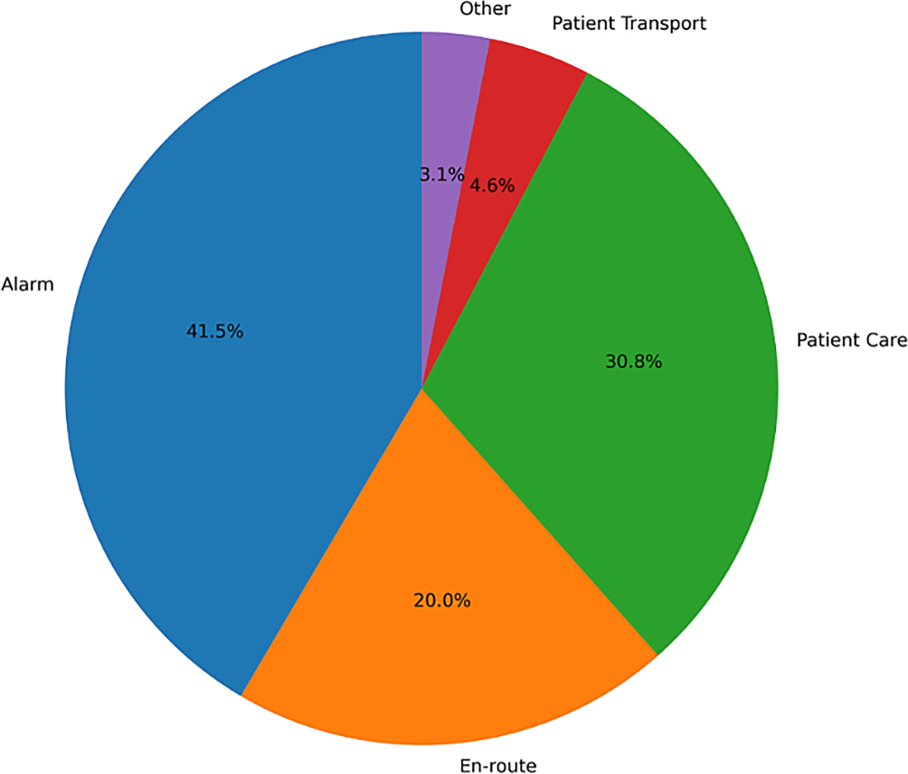 Während des Alarms traten 41,5 % der Veränderungen auf, 30,8 % während der Patient:innenversorgung, 20,0 % während der Fahrt zum Einsatz und 4,6 % während des Patient:innentransports. (Abb. 1). Wenn der Alarm während des Schlafs erfolgte, waren signifikant mehr EKG-Veränderungen zu beobachten als während der übrigen Zeit.