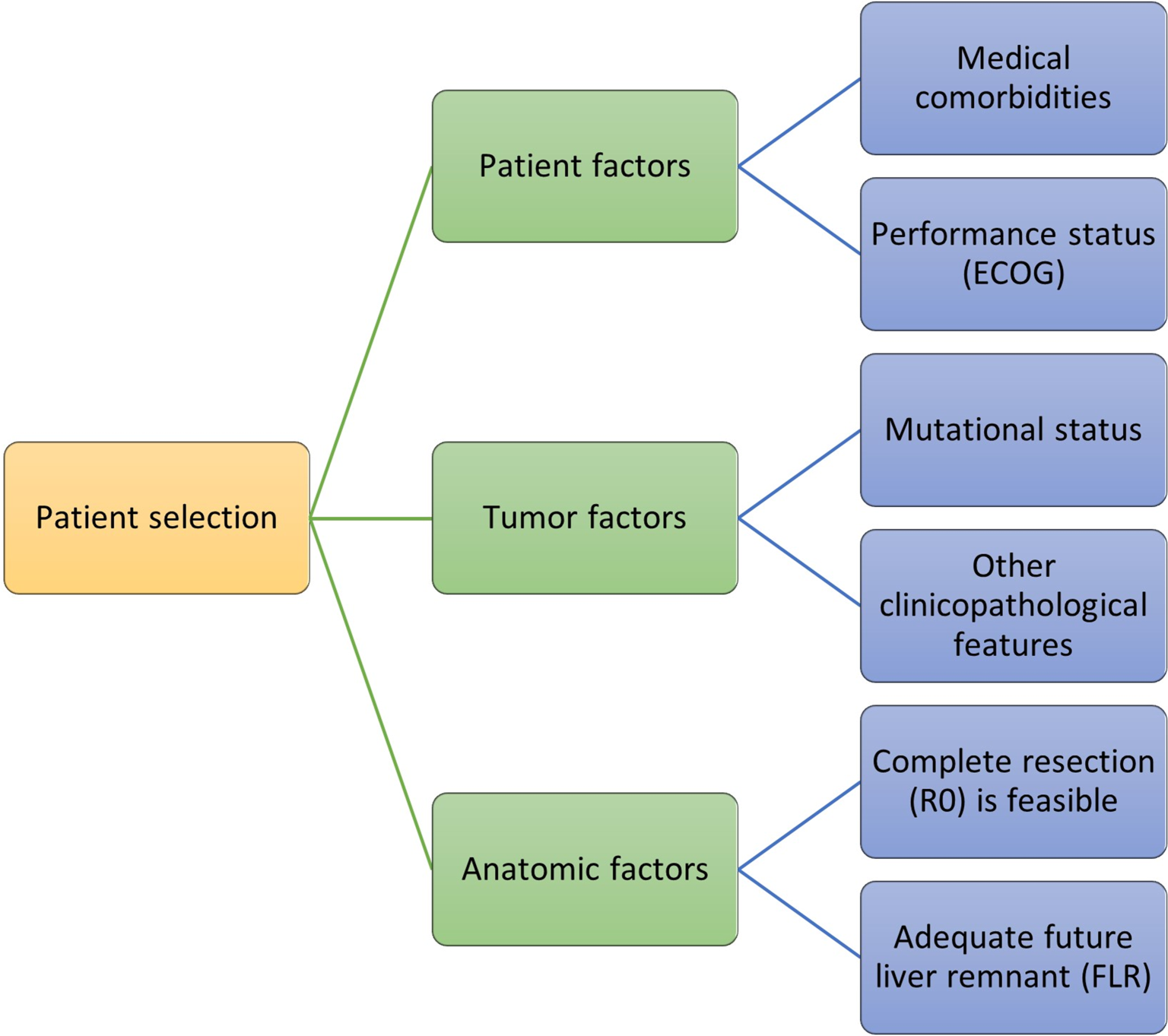 Patient-related factors: patients undergoing liver resection should be carefully assessed preoperatively for their underlying medical comorbidities, especially with regards to preexisting liver disease, severe cardiopulmonary conditions, and other chronic illnesses. Consequently, a poor general performance status can prohibit a patient with resectable CRLM from receiving liver surgery, as the perioperative risk may be too high.