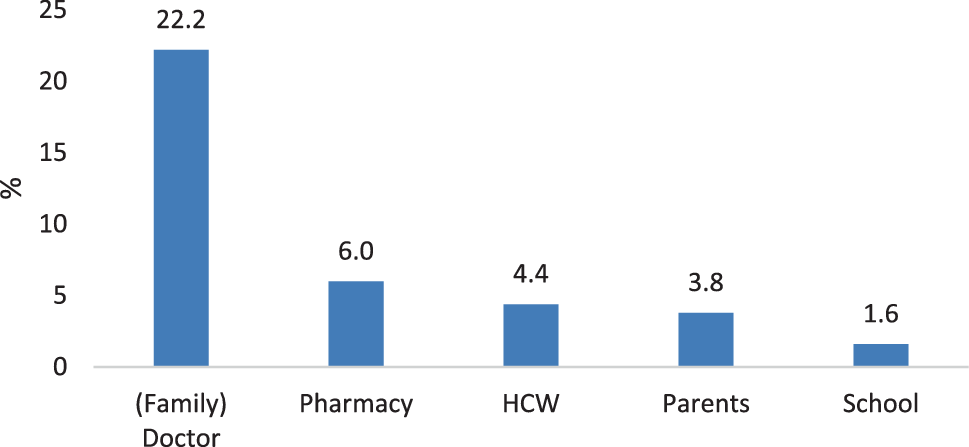 Regarding the major source of information, we confirm the physician as the most important contact person for adults to deliver information about and build trust in vaccinations, as has been shown extensively in other research [15, 17, 28, 29, 31]. The majority of children (75.0%) named their parents as influential source of information about vaccination, but a significant percentage (39.2%) also valued their family doctor.