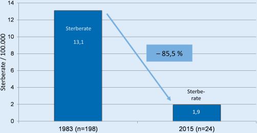 Als GROSSE SCHÜTZEN KLEINE, das Österreichische Komitee für Unfallverhütung im Kindesalter, 1983 gegründet wurde, ereigneten sich in Österreich jährlich rund 270.000 Kinderunfälle; 198 Kinder erlitten eine tödliche Verletzung. Aktuell verunfallen pro Jahr etwa 166.000 Kinder. Im Jahr 2015 sind 24 Kinder nach einem Unfall verstorben (Abb. 1 und 2). Auf ein totes Kind kommen zwei weitere Kinder, die infolge des Unfalls schwer behindert sind.