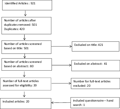 Overall 20 articles were included in the analysis. Fig. 1 shows a flowchart of the selection process.